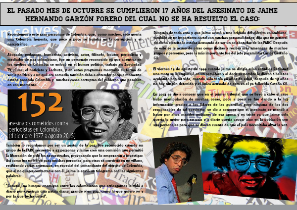 El pasado mes de octubre se cumplieron 17 años del asesinato de Jaime Hernando Garzón Forero del cual no se ha resuelto el caso: