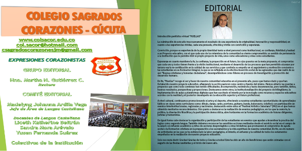 En fin, "Huellas" recoge el ser y hacer de nuestra comunidad educativa en el presente año, pasos que hemos dado y que han fortalecido nuestro proyecto educativo, afianzando la acción pastoral como centro y fuente del mismo. Hemos abierto las puertas a proyectos que como todo comienzo han tenido dificultades, incomprensión, resistencia y hasta desavenencias, pero también, éxitos, buenos resultados, perspectivas y proyecciones. Destacamos entre otros, la institucionalización del proyecto de bilingüismo, la implementación de aulas y plataformas digitales que han suscitado el interés por la tecnología como recursos y espacios educativos acordes con la realidad y el posterior desempeño en la educación superior y el futuro profesional.