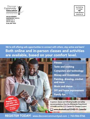 In-person classes are following health and safety recommendations from the Minnesota Department of Health and the U . S . Centers for Disease Control . www . ahschools . us / COVID-19 _ CommEd