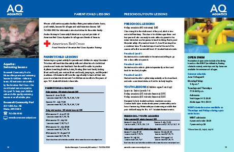 American Red Cross Aquatics for all ages and levels of lessons.