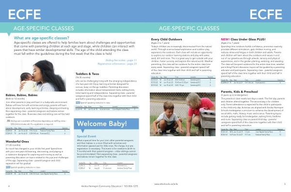 Age-specific classes are offered to help families learn about challenges and opportunities that come with parenting children at each age and stage , while children can interact with peers that have similar developmental skills . The age of the child attending the class must fall within the guidelines during the first week that the class is held .