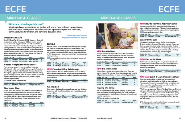 Course No . Day Date Time Location Sessions EC034-41 M Jan 31-May 23 8:45-10:30 am Coon Rapids Family Place 14
