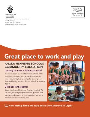 You can support our neighborhood schools while earning a little extra income . Anoka-Hennepin Schools currently has openings for evening and weekend facility monitors for our schools across the district .