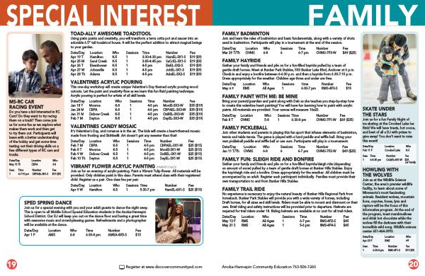 Date / Day Location Who Sessions Time Number Fee Feb 8 T OVMS 5-8 1 6:30-8 pm OVMS-7F1-W $ 69 ($ 35 )
