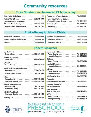 Adult / Child Mental Health Crisis Anoka County ..................... 763-425-1050
