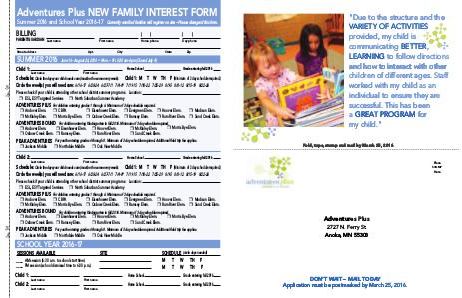 ADVENTURES PLUS For children entering grades 1 through 6. Minimum of 3 day schedule required.