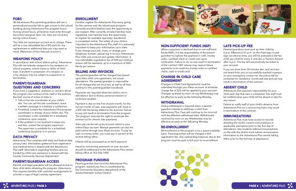 Adventures Plus assumes responsibility for your child each day that care is scheduled . Site staff must be notified when your child will be absent or late for any reason .