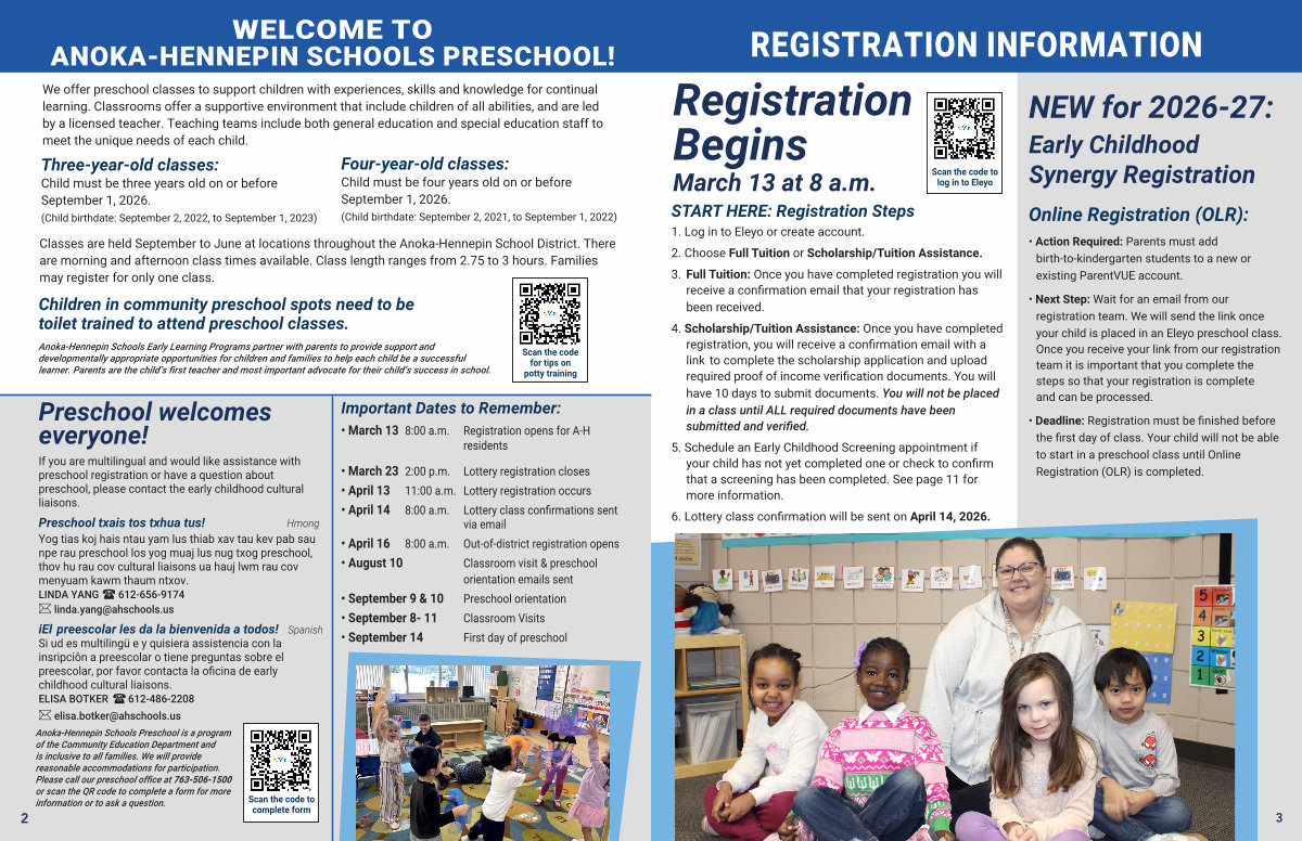 • Deadline: Registration must be finished before the first day of class. Your child will not be able to start in a preschool class until Online Registration( OLR) is completed.