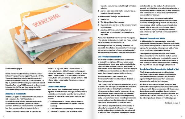 A debt collector who communicates or attempts to communicate electronically with a consumer must include a reasonable and simple method the consumer can use to opt-out . For example , the following would suffice : “ reply STOP to stop texts to this telephone number ”.