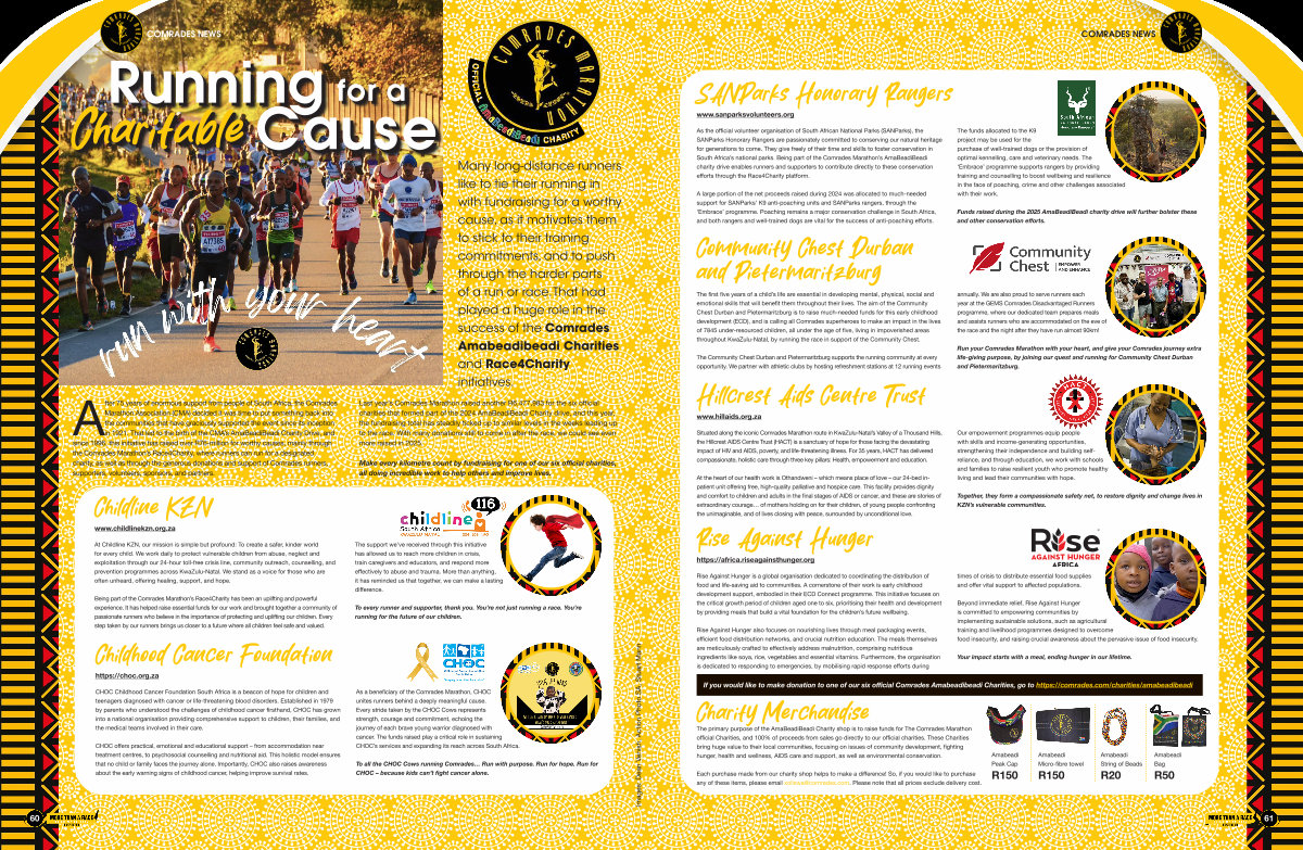 After 75 years of enormous support from people of South Africa, the Comrades Marathon Association( CMA) decided it was time to put something back into the communities that have graciously supported the event since its inception in 1921. That led to the birth of the CMA’ s AmaBeadiBeadi Charity Drive, and since 1996, this initiative has raised over R76-million for worthy causes, mainly through the Comrades Marathon’ s Race4Charity, where runners can run for a designated charity, as well as through the generous donations and support of Comrades runners, supporters, volunteers, sponsors, and partners.