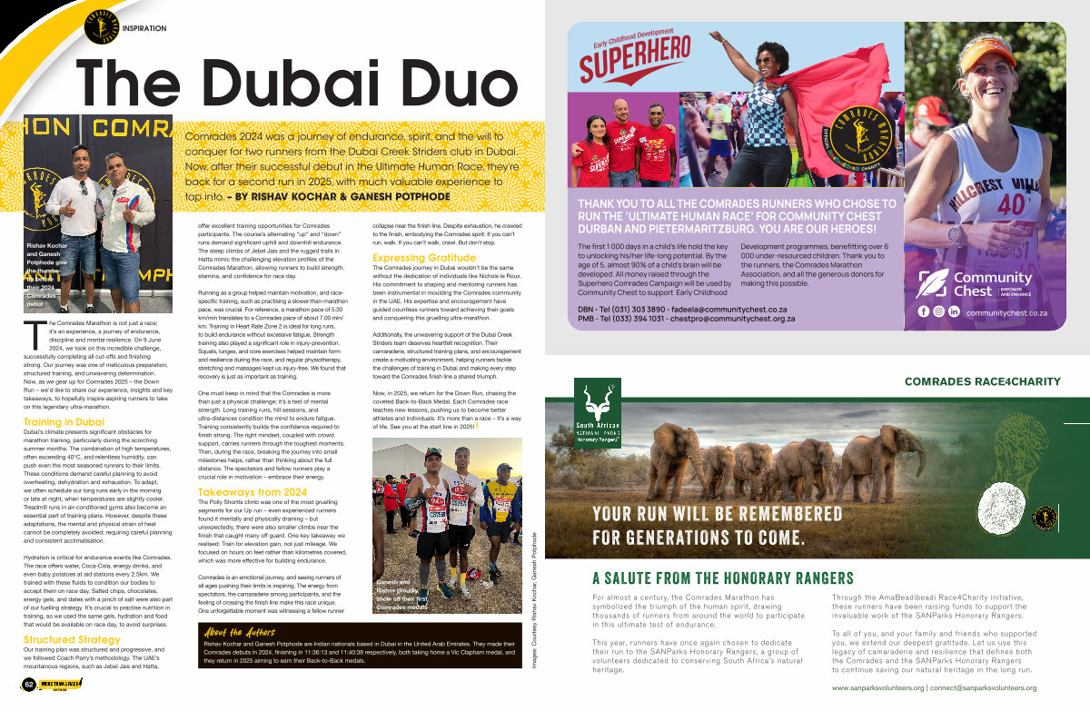 To all of you, and your family and friends who supported you, we extend our deepest gratitude. Let us use this legacy of camaraderie and resilience that defines both the Comrades and the SANParks Honorary Rangers to continue saving our natural heritage in the long run.