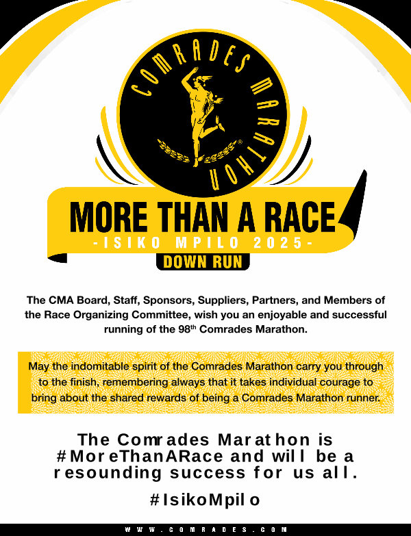 The Comrades Marathon is # MoreThanARace and will be a resounding success for us all.