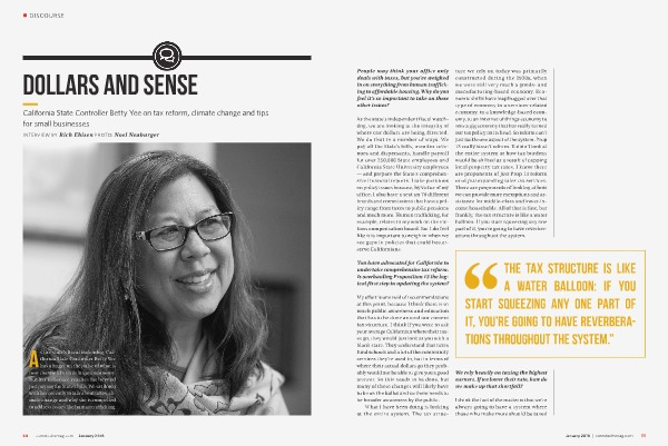 What I have been doing is looking at the entire system. The tax structure we rely on today was primarily constructed during the 1930s, when we were still very much a goods- and manufacturing-based economy. Economic shifts have leapfrogged over that type of economy to a services-related economy, to a knowledge-based economy, to an internet of things economy to now a gig economy that has really turned our tax policy on its head. So reform can’ t just tackle one aspect of the system. Prop 13 really wasn’ t reform. It didn’ t look at the entire system or how tax burdens would be shifted as a result of capping local property tax rates. I know there are proponents of just Prop 13 reform or of just expanding sales tax services. There are proponents of looking at how we can provide more exemptions and assistance for middle-class and lower-income households. All of that is fine, but frankly, the tax structure is like a water balloon: If you start squeezing any one part of it, you’ re going to have reverberations throughout the system.
