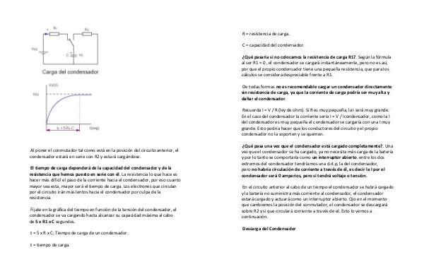 t = 5 x R x C; Tiempo de carga de un condensador.
