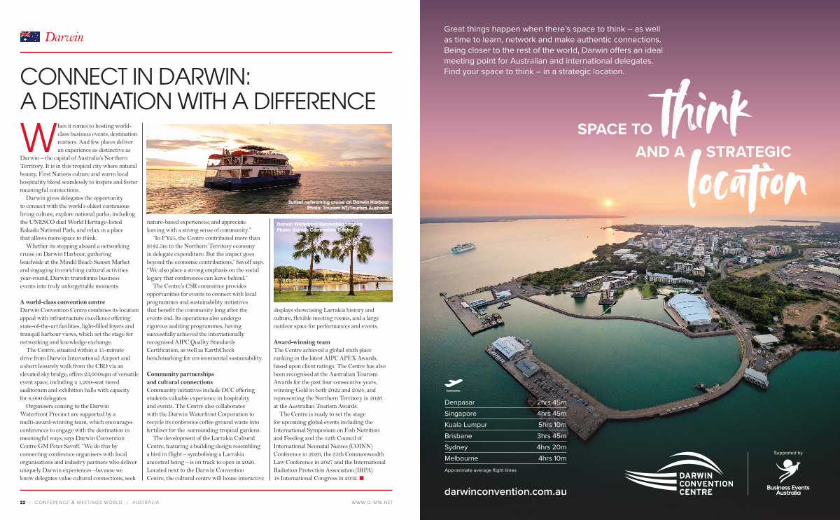 “ In FY25, the Centre contributed more than $ 142.5m to the Northern Territory economy in delegate expenditure. But the impact goes beyond the economic contributions,” Savoff says.“ We also place a strong emphasis on the social legacy that conferences can leave behind.”