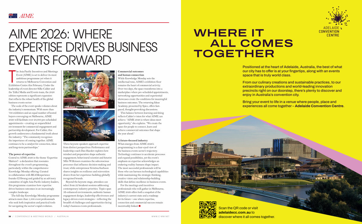 For the meetings and incentives professionals who will gather in Melbourne, AIME 2026 offers both a snapshot of the industry’ s current state and a roadmap for its future – one where expertise, connection and commercial success remain inextricably linked. n