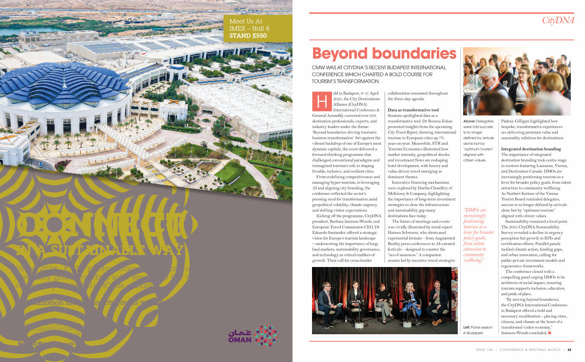“ By moving beyond boundaries, the CityDNA International Conference in Budapest offered a bold and necessary recalibration – placing cities, citizens, and climate at the heart of a transformed visitor economy,” Jamison-Woods concluded. n