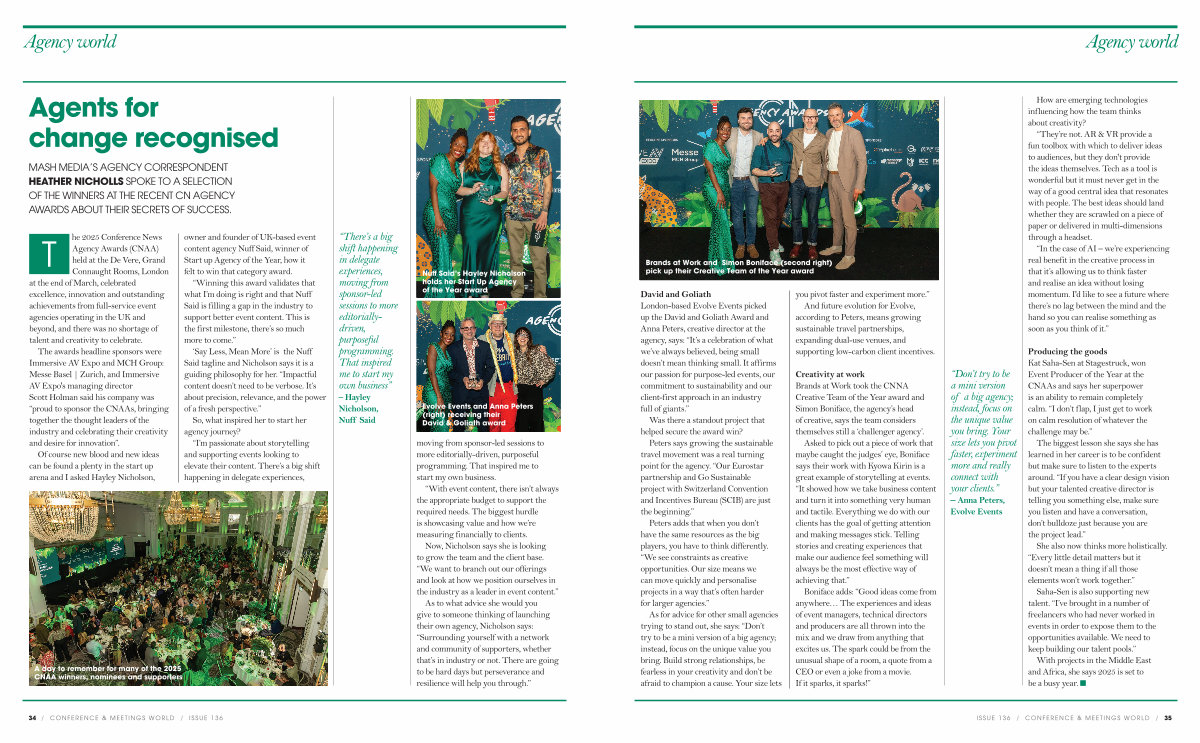Agency Awards( CNAA) held at the De Vere, Grand Connaught Rooms, London at the end of March, celebrated excellence, innovation and outstanding achievements from full-service event agencies operating in the UK and beyond, and there was no shortage of talent and creativity to celebrate.