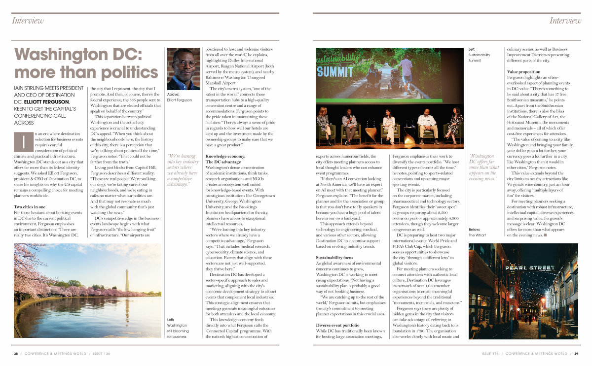 For meeting planners seeking to connect attendees with authentic local culture, Destination DC leverages its network of over 1,050 member organisations to create meaningful experiences beyond the traditional“ monuments, memorials, and museums.”