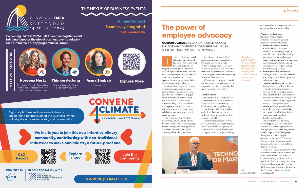 Convening EMEA is PCMA EMEA’ s annual flagship event bringing together the global business events industry for an immersive 3-day programme in Europe.