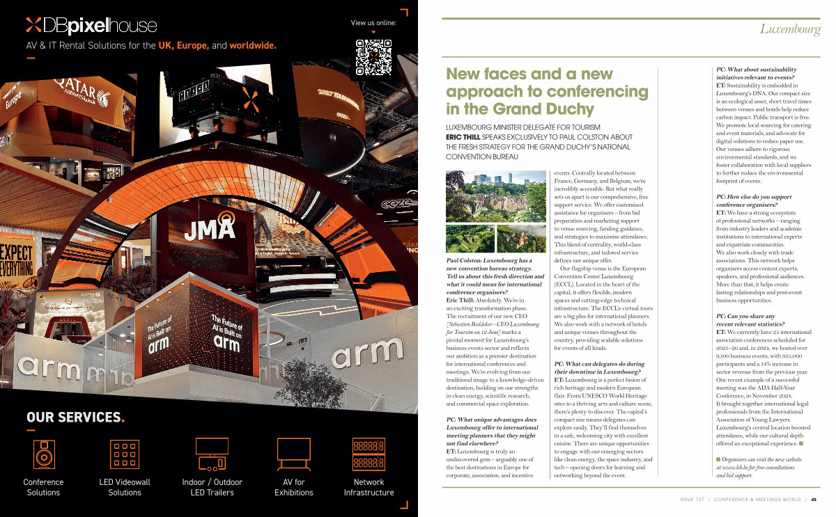 LUXEMBOURG MINISTER DELEGATE FOR TOURISM ERIC THILL SPEAKS EXCLUSIVELY TO PAUL COLSTON ABOUT THE FRESH STRATEGY FOR THE GRAND DUCHY’ S NATIONAL CONVENTION BUREAU