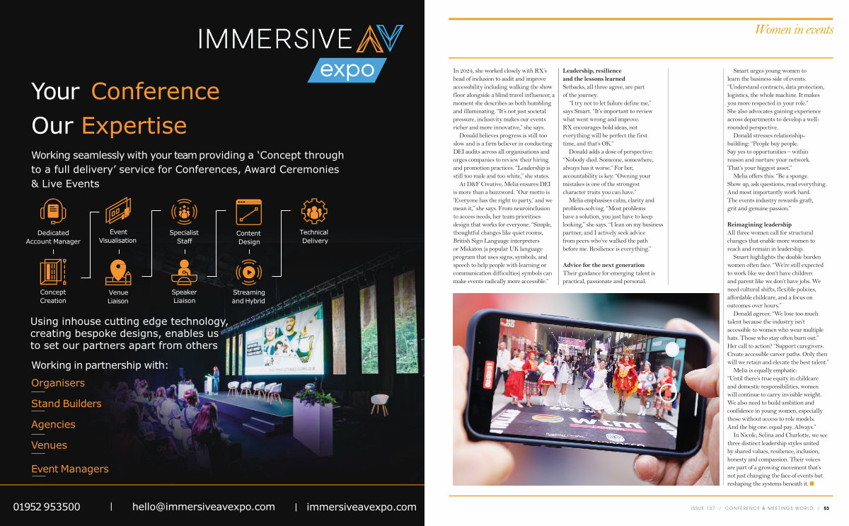 In Nicole, Selina and Charlotte, we see three distinct leadership styles united by shared values, resilience, inclusion, honesty and compassion. Their voices are part of a growing movement that’ s not just changing the face of events but reshaping the systems beneath it. n