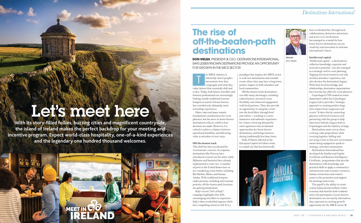 DON WELSH, PRESIDENT & CEO, DESTINATIONS INTERNATIONAL, SAYS LESSER KNOWN DESTINATIONS PROVIDE AN OPPORTUNITY FOR GROWTH IN THE MICE SECTOR