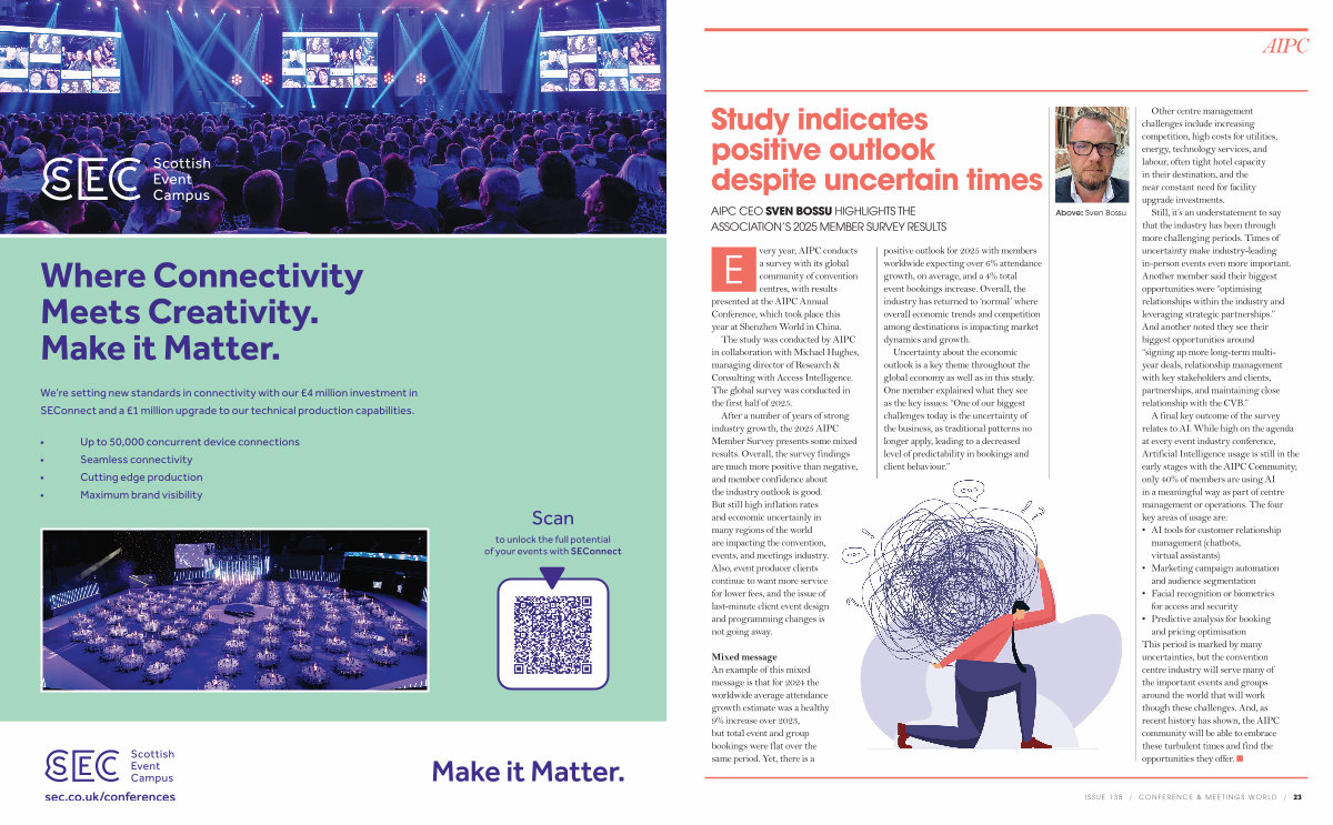 a survey with its global community of convention centres, with results presented at the AIPC Annual Conference, which took place this year at Shenzhen World in China.