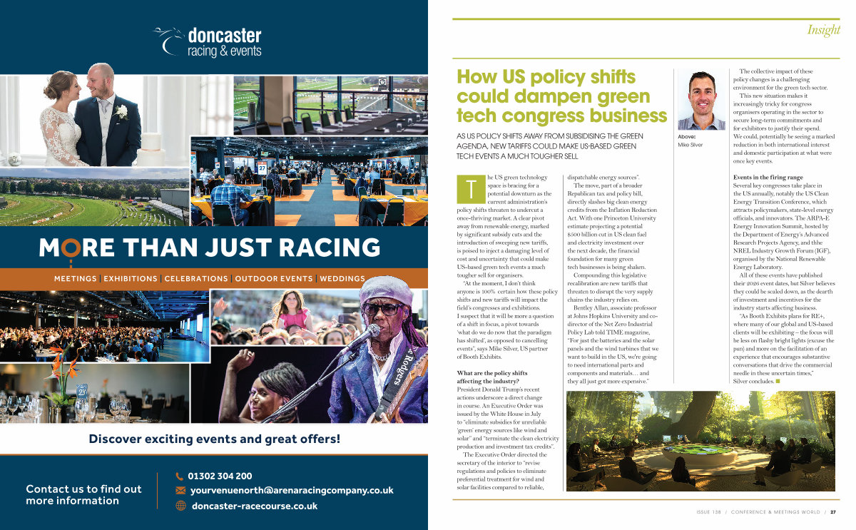 space is bracing for a potential downturn as the current administration’ s policy shifts threaten to undercut a once-thriving market. A clear pivot away from renewable energy, marked by significant subsidy cuts and the introduction of sweeping new tariffs, is poised to inject a damaging level of cost and uncertainty that could make US-based green tech events a much tougher sell for organisers.