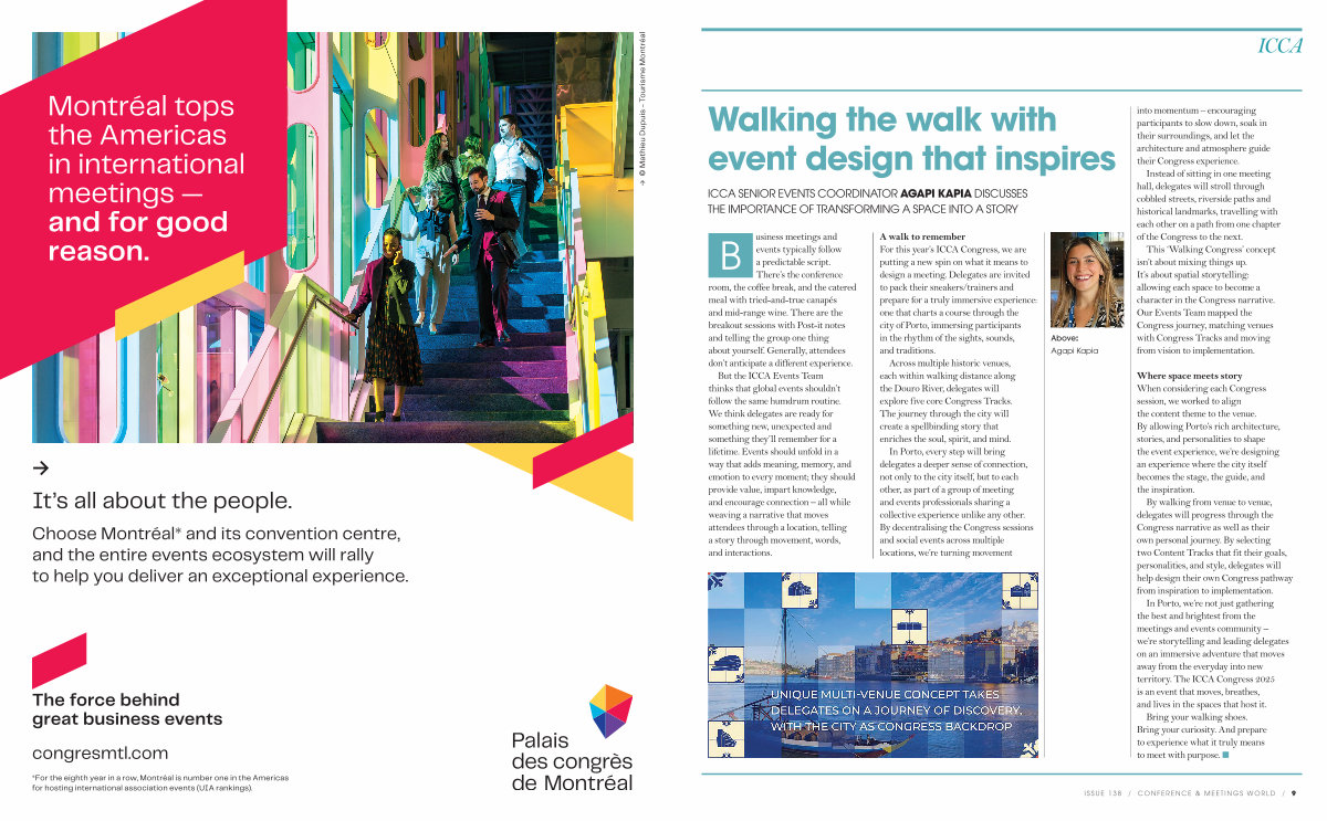 In Porto, we’ re not just gathering the best and brightest from the meetings and events community – we’ re storytelling and leading delegates on an immersive adventure that moves away from the everyday into new territory. The ICCA Congress 2025 is an event that moves, breathes, and lives in the spaces that host it. Bring your walking shoes. Bring your curiosity. And prepare to experience what it truly means to meet with purpose. n