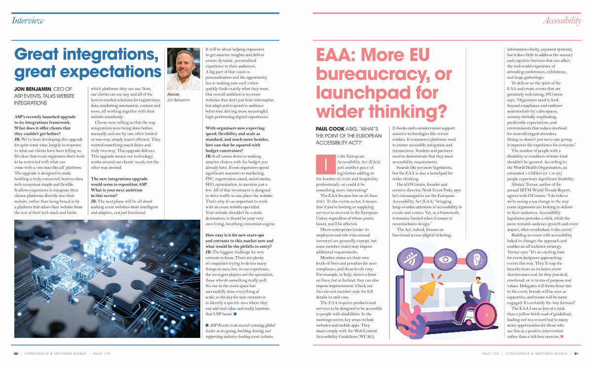 The new integrations upgrade would seem to reposition ASP. What is your next ambition in this sector? JB: The next phase will be all about making event websites more intelligent and adaptive, not just functional.