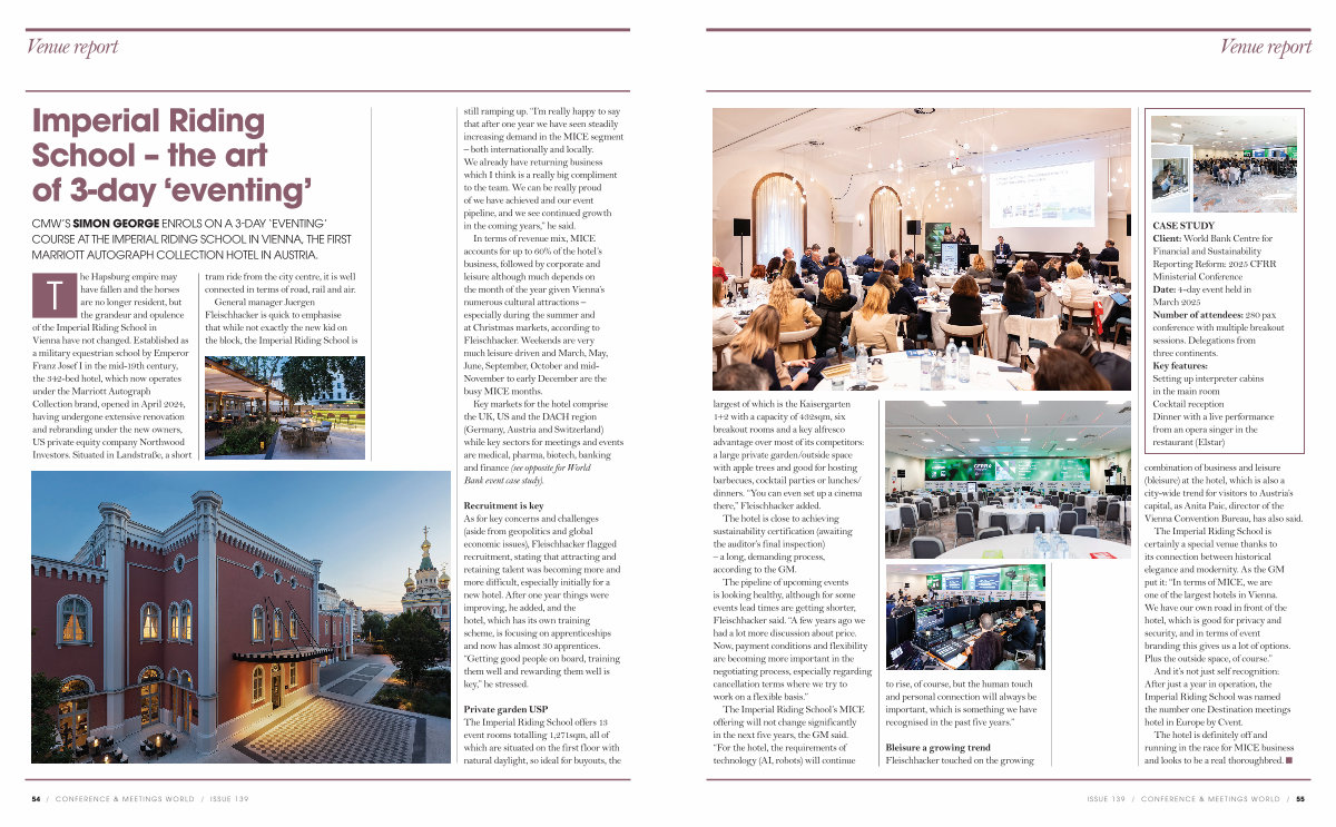 CMW’ S SIMON GEORGE ENROLS ON A 3-DAY‘ EVENTING’ COURSE AT THE IMPERIAL RIDING SCHOOL IN VIENNA, THE FIRST MARRIOTT AUTOGRAPH COLLECTION HOTEL IN AUSTRIA.