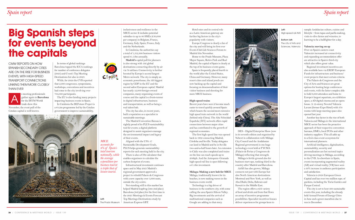 Spain is frequently placed fourth in the world after the United States, China and Germany. However, many resort cities and inland jewels are now backing up the capital and focusing on deseasonalisation of their visitor business and shooting for more MICE business.