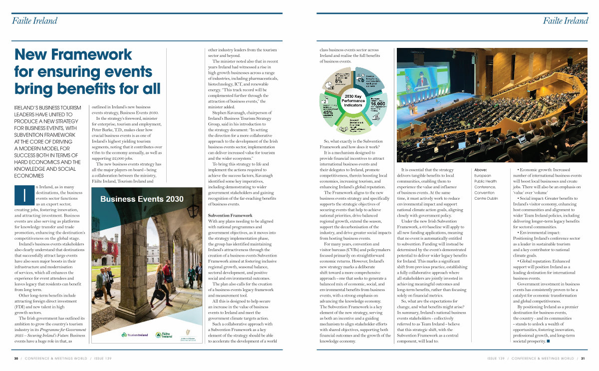 IRELAND’ S BUSINESS TOURISM LEADERS HAVE UNITED TO PRODUCE A NEW STRATEGY FOR BUSINESS EVENTS, WITH SUBVENTION FRAMEWORK AT THE CORE OF DRIVING A MODERN MODEL FOR SUCCESS BOTH IN TERMS OF HARD ECONOMICS AND THE KNOWLEDGE AND SOCIAL ECONOMIES