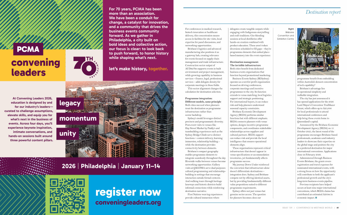 Sydney offers not just venues but genuine sector access. The question for planners becomes: does our
