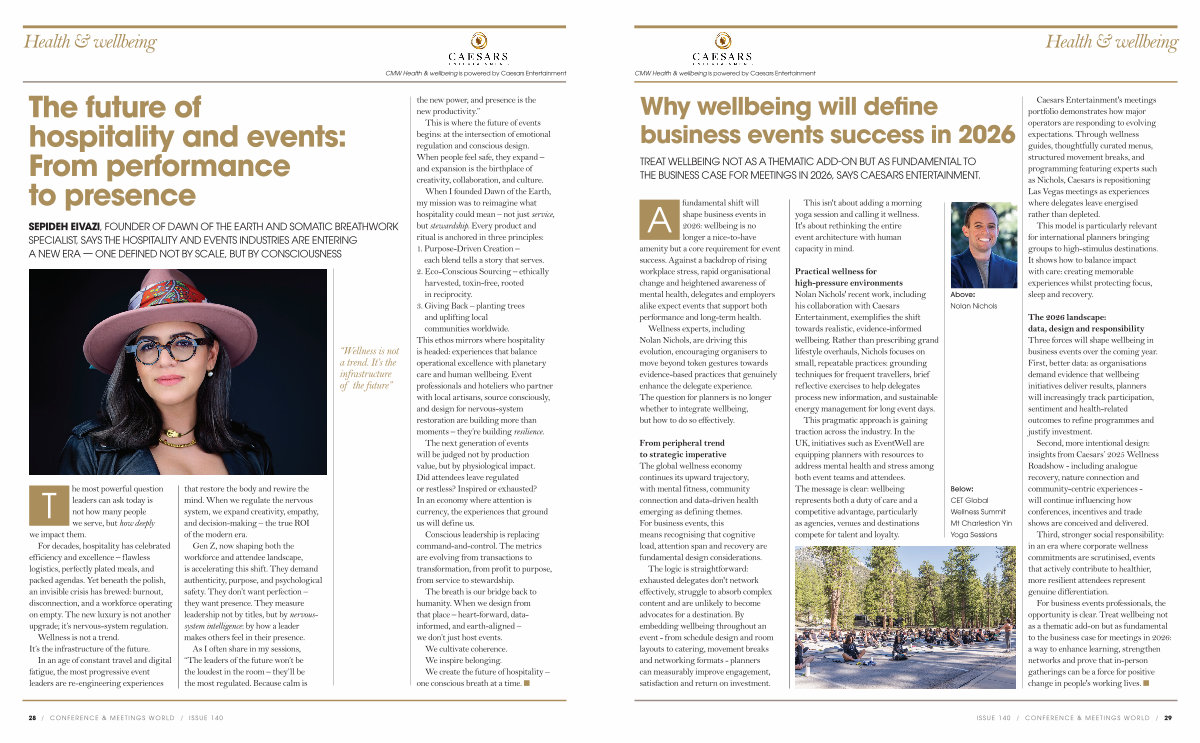 TREAT WELLBEING NOT AS A THEMATIC ADD-ON BUT AS FUNDAMENTAL TO THE BUSINESS CASE FOR MEETINGS IN 2026, SAYS CAESARS ENTERTAINMENT.