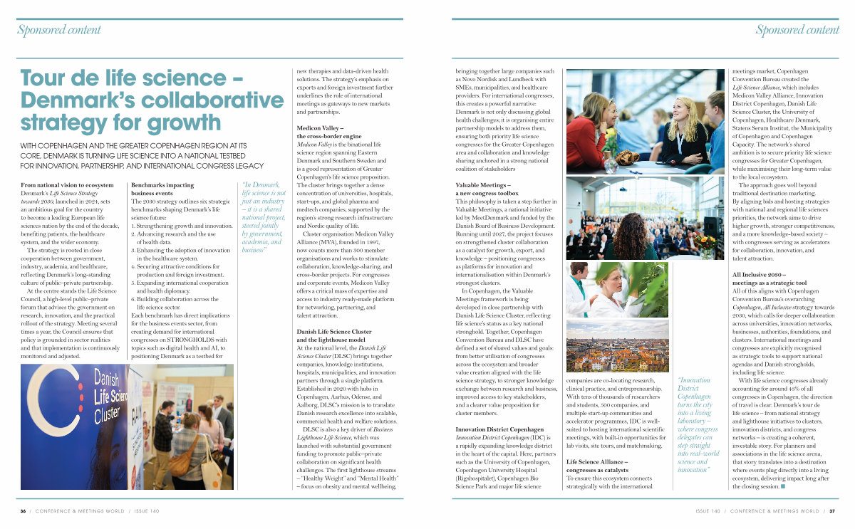 With life science congresses already accounting for around 43 % of all congresses in Copenhagen, the direction of travel is clear. Denmark’ s tour de life science – from national strategy and lighthouse initiatives to clusters, innovation districts, and congress networks – is creating a coherent, investable story. For planners and associations in the life science arena, that story translates into a destination where events plug directly into a living ecosystem, delivering impact long after the closing session. n