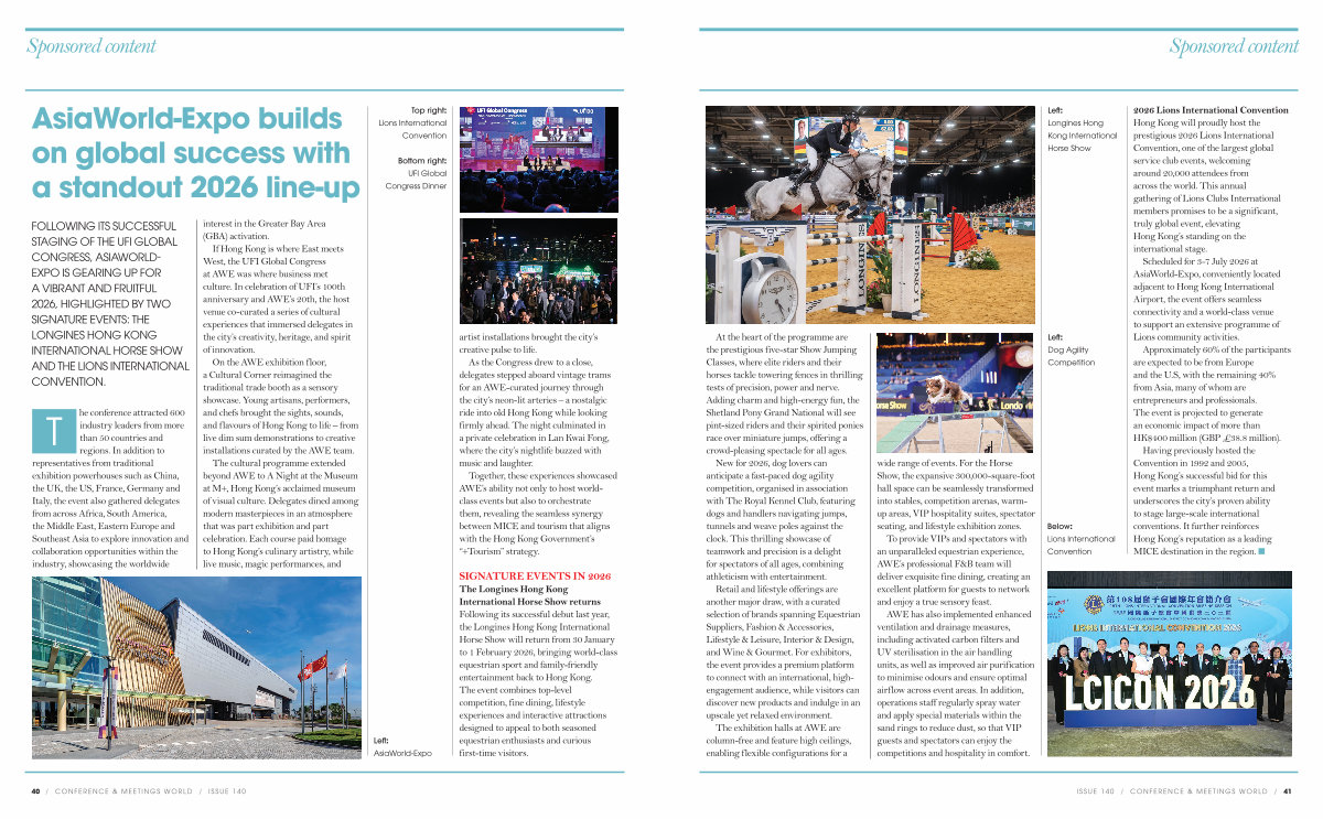 Having previously hosted the Convention in 1992 and 2005, Hong Kong’ s successful bid for this event marks a triumphant return and underscores the city’ s proven ability to stage large-scale international conventions. It further reinforces Hong Kong’ s reputation as a leading MICE destination in the region. n