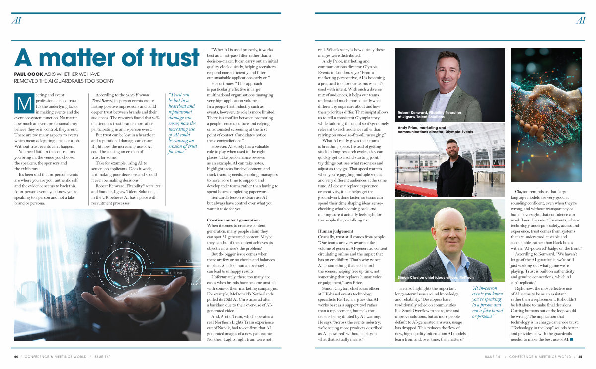 He continues:“ This approach is particularly effective in large multinational organisations managing very high application volumes. In a people-first industry such as events, however, its role is more limited. There is a conflict between promoting a people-centred culture and relying on automated screening at the first point of contact. Candidates notice these contradictions.”
