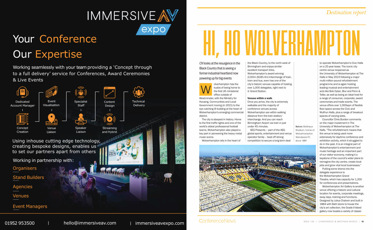 HI, HO WOLVERHAMPTON the Black Country, to the north-west of Birmingham and enjoys similar excellent transport links. Wolverhampton’ s award-winning £ 150m($ 185.4m) Interchange of train, tram and bus, even has one of the city’ s historic venues capable of hosting over 1,000 delegates, right next to it: Grand Station.