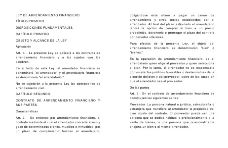 LEY DE ARRENDAMIENTO FINANCIERO TÍTULO PRIMERO DISPOSICIONES FUNDAMENTALES CAPÍTULO PRIMERO OBJETO Y ALCANCE DE LA LEY Aplicación