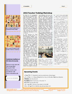 2012 年 4 月 29 日, 北卡罗莱纳州立 大学孔子学院成功举办了为期一 天的中文教师职业培训 。 此次培 训旨在向从事中文教育的教师提 供 一个分享 成功经验, 交流 心