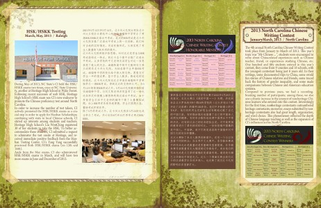 第四届北卡罗来纳州中文写作大赛于 2013 年 3 月 28 日尘 埃落定 。 本次大赛以《我的中国 …… 》为题, 共收到 来自北卡罗来纳州 9 个郡 16 所学校的( 北卡共有 11 个郡 开设了汉语课) 的稿件 150 多份, 他们中年龄最小的只 有 6 岁 。 他们有的用生花妙笔生动有趣地记载了自己 的中国之旅, 有的惟妙惟肖地描摹了自己的中国亲人 或朋友的趣事, 有的条分缕析地追溯中国男女不平等 的历史, 还有的从自己的切身经验出发, 对中美两国 的教育进行了犀利深刻的对比 。 一份份投稿中描摹的 是中国人, 中国事, 道不尽的是浓浓的中国情和对中 国文化的向往和孺慕 。 本次大赛除了参与人数再创新高外, 还有一个与以往 显著不同的特点: 在本界中文大赛中, 非华裔参赛选 手的作品无论是数量还是质量都有显著提高 。 非华裔 参赛作者数量首次大幅度超过华裔选手, 而且他们的 作品无论是从文章的篇幅还是谋篇布局, 遣词造句都 已与华裔选手相差无几 。 这从一个侧面反映出我们北 卡的汉语教学正在逐步深入, 也反映了我们北卡孔院 的影响正在显著扩大 。