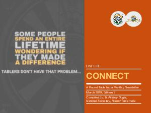 TM LIVE LIFE CONNECT A Round Table India Monthly Newsletter March 2019, Edition 9 Compiled by: Tr. Akshay Dugar, National Secretary, Round Table India