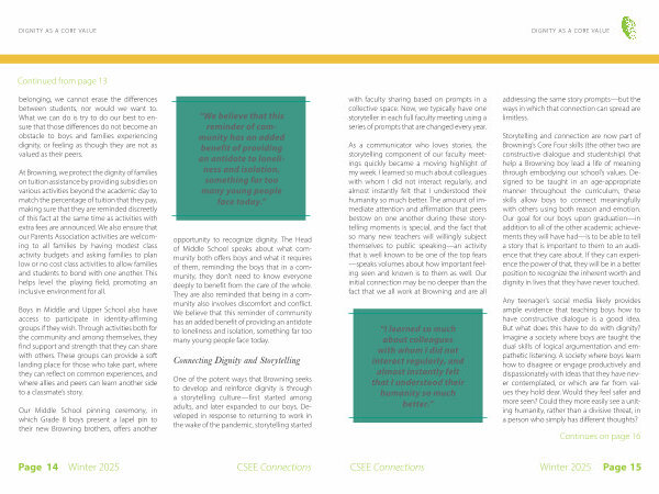 Over time, words become vessels of meaning— suitcases packed with layers of culture, waiting to be explored by philosophers and seekers. Etymology guides us back to a word’ s heart, the essence that originally sparked its life beat. At the root of dignity lies the Latin dignitas, or worth. As a psychotherapist working with high-achieving young people, I hear this persistent refrain in sessions:“ Am I enough? Do I matter enough? Do I do enough?” For all of us, and for adolescents in particular, the yearning to discern one’ s worth, to affirm one’ s dignity, is insatiable.