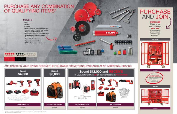 PURCHASE $ 5,000 in any Hilti tool inserts AND JOIN our inventory management program **