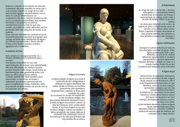 Neste núcleo da exposição, retomamos um dos temas primitivos da arte: a figura de pé, parada ou em movimento. Esta é mais frequentemente masculina do que feminina, contudo, as duas coleções apresentam exemplos que não são exclusivamente masculinos.