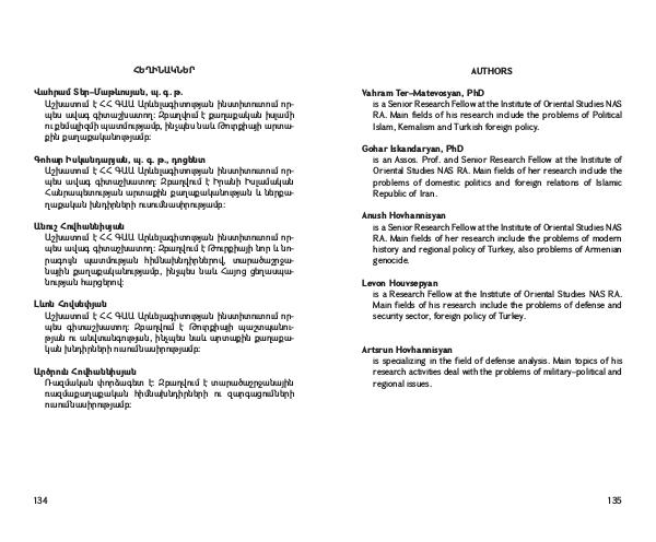 is a Research Fellow at the Institute of Oriental Studies NAS RA.