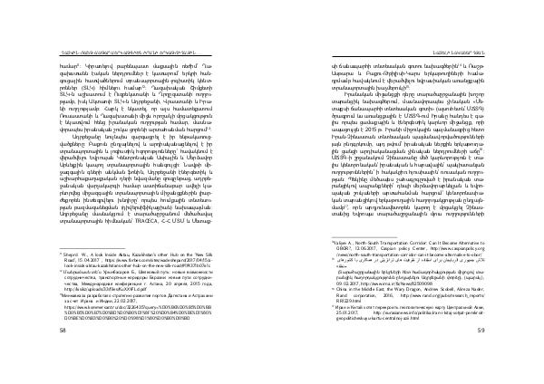 սի ճանապարհի տնտեսական գոտու նախագծերին 14 և Ռաշթ- Ասթարա և Բաքու-Թբիլիսի-Կարս երկաթուղիների համադրմամբ հավակնում է վերածվելու եվրասիական առանցքային տրանսպորտային խաչմերուկի 15: