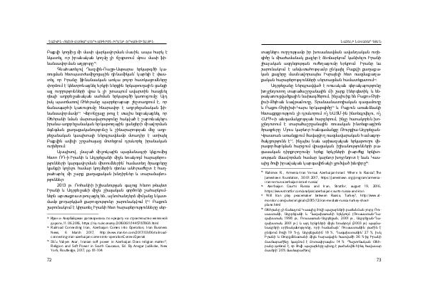 տացնելու ուղղությամբ իր խուսանավման ավանդական ուղեգիծը և միաժամանակ քայլեր է ձեռնարկում ՝ կանխելու Իրանի շիայական ազդեցության ուժեղացումը երկրում: Իրանը ևս շարունակում է անվստահությամբ ընկալել Բաքվի քաղաքական քայլերը մասնավորապես Իսրայելի հետ ռազմաքաղաքական հարաբերությունների սերտացման համատեքստում 55: